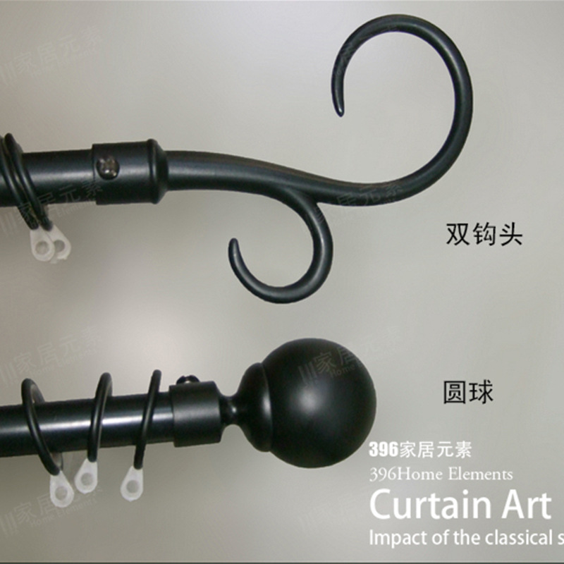 396家庭19mm純黒色鉄製の細いカーテンロッド/ローマシングル/田舎