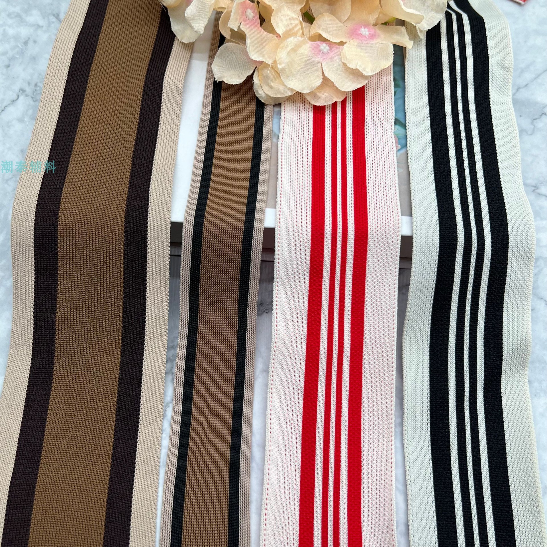 ジャカードウェビング付きニットベルト、衣類アクセサリーベルト、パンツサイドストリップリボン、DIYソフトワイド服ストライプ