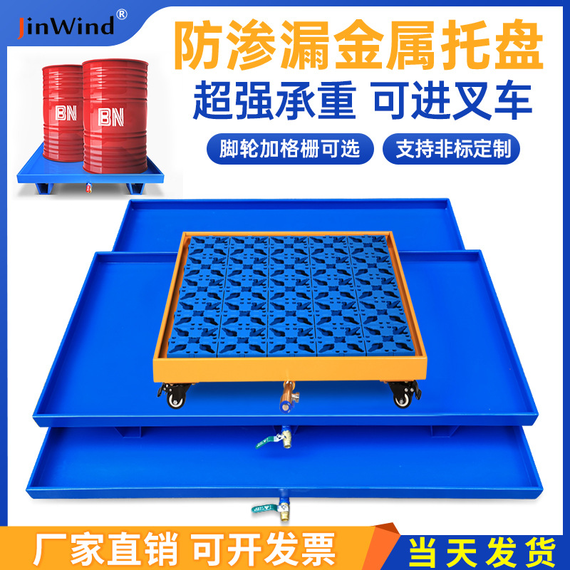 防渗漏金属托盘化学品防泄漏油桶危废液体二次容器防漏油移动平台