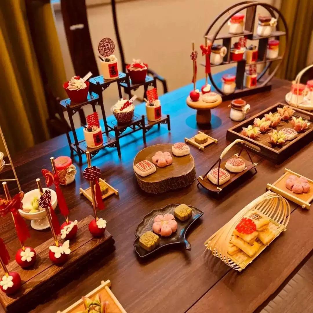 新しい中国風の結婚式の婚約宴会デザートテーブルディスプレイスタンド誕生日宴会ケーキスタンド無垢材セット装飾装飾品