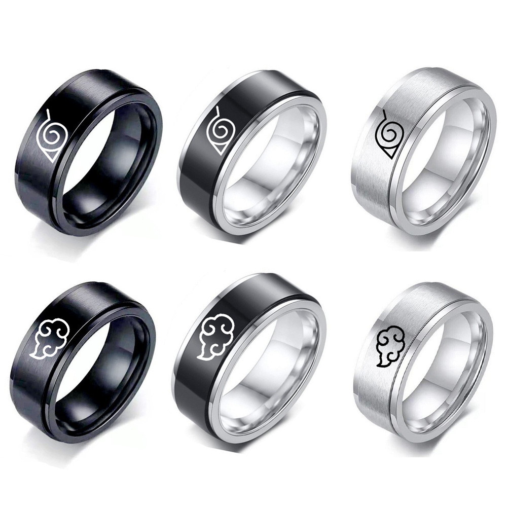 アニメ周辺のアクセサリー火影忍者木葉暁組織マーク回転指輪ステンレスレーザー指輪