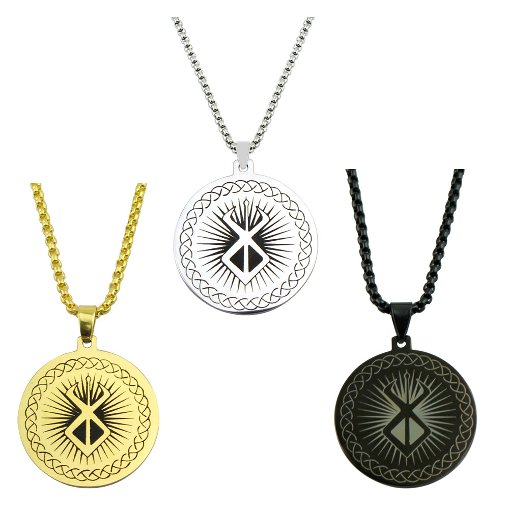 欧米の国境を越えてよく売れている剣風の伝奇的な標識のネックレスのステンレスの丸い札のレーザーの彫刻のペンダント
