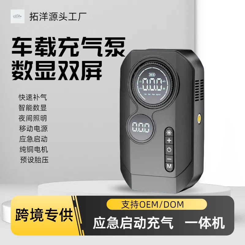 車載インフレータブルポンプ二画面デジタル表示空気ポンプ無線自動車空気入れ充電照明多機能クロスボーダー専用供給