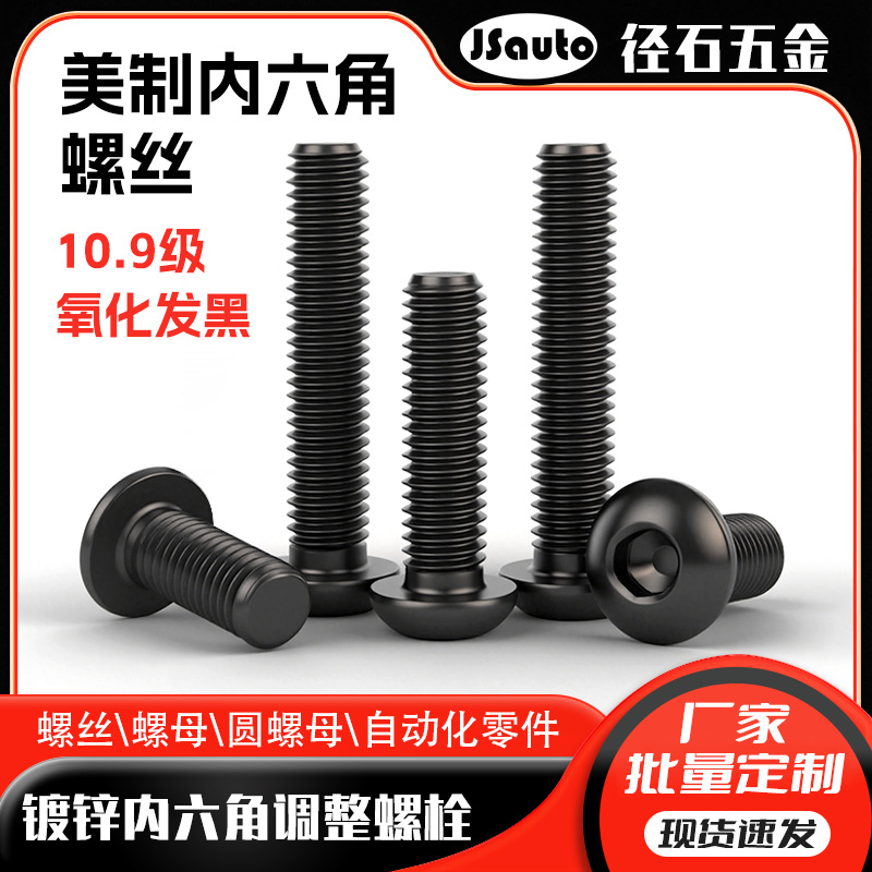 ANS12.9 グレードアメリカンカップヘッド六角ネジスポットマシンワイヤー歯口黒円筒頭六角ネジ