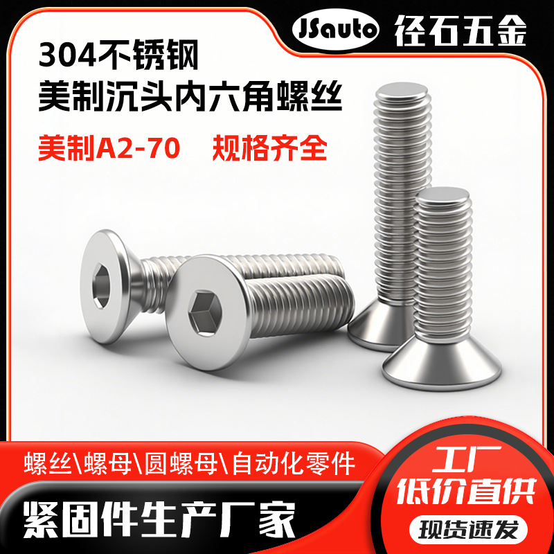 304アメリカ製皿頭六角穴付きネジ、摩擦低減・騒音軽減、アメリカ製A2-70ステンレス鋼平頭六角ネジ