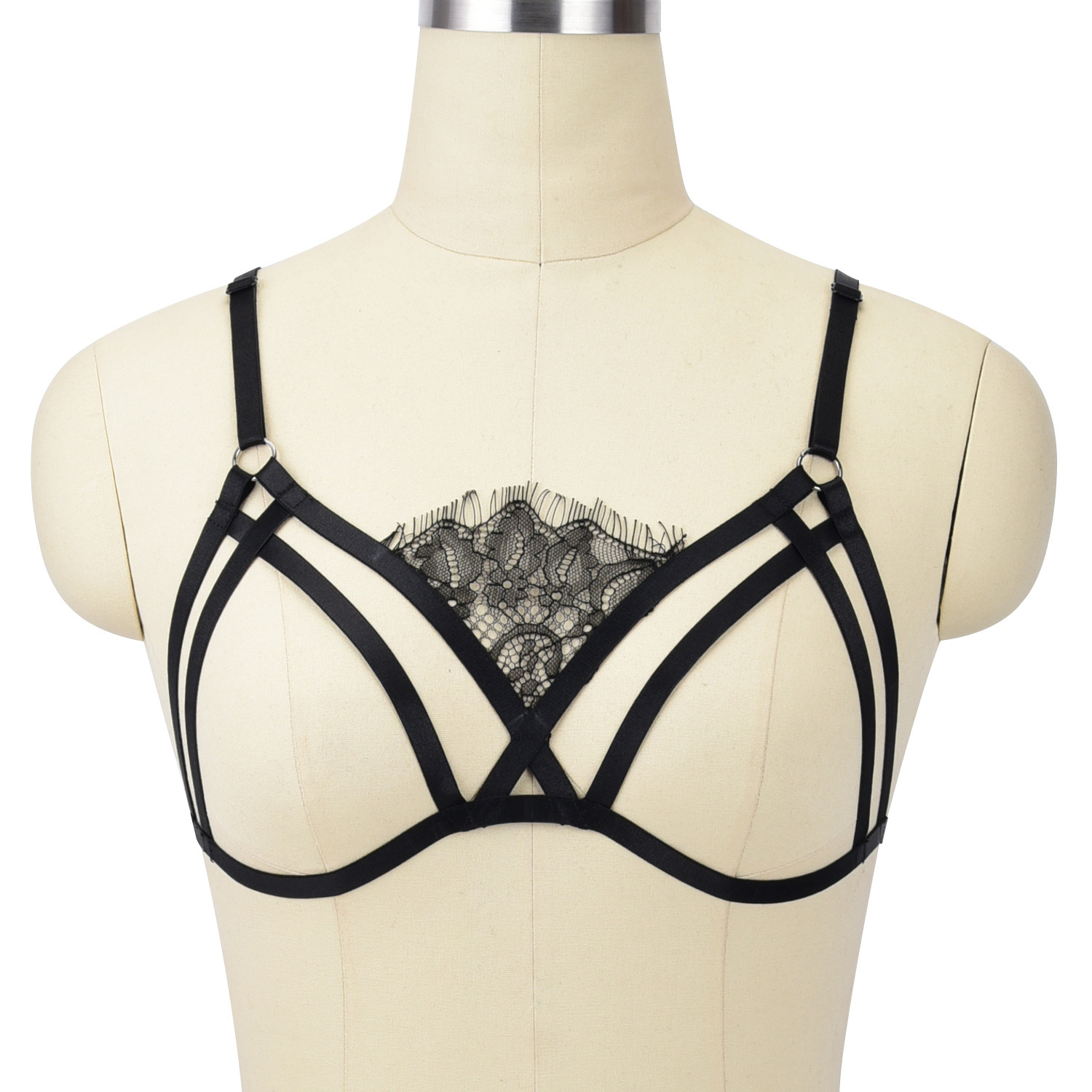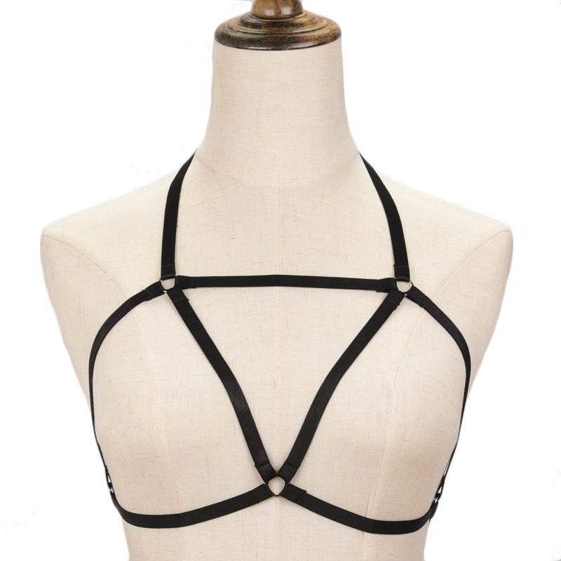 速売通ebayセクシーバンド露乳ブラジャーbody harness純色弾性バンド下着卸売り黒