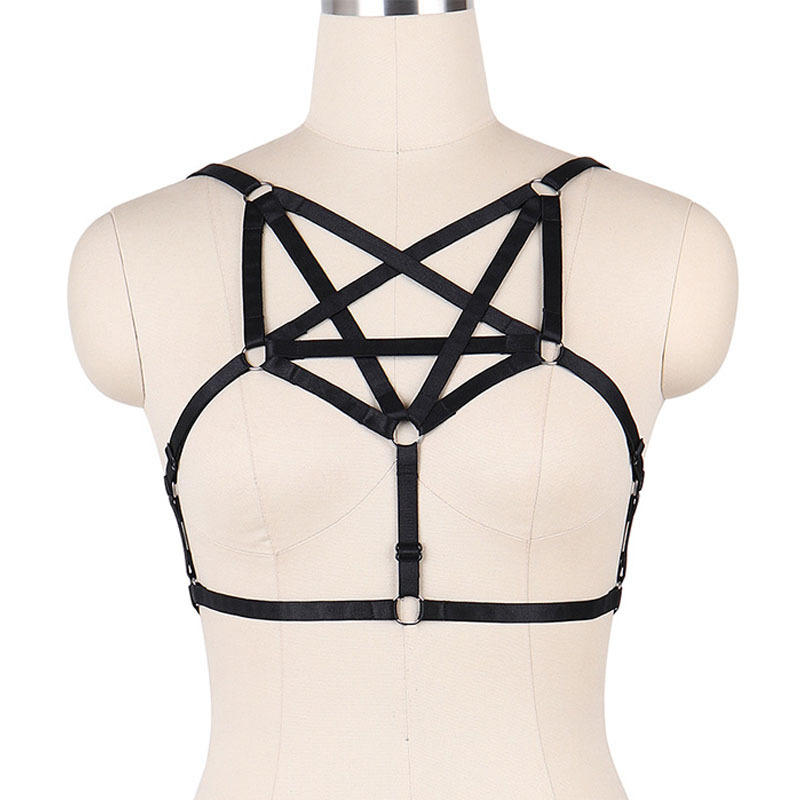 国境を越えたソースのストラップは透かし彫りの五角星の甘いクールなギャルの女性の多彩な趣味のハーネスの上着O0507を束縛します。