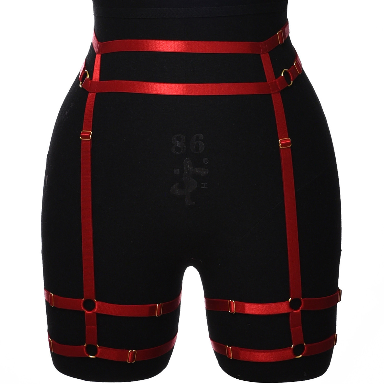 建紅服のクロスボーダーの新型の人気セクシーな透かし彫りのバンドは女性の趣味のハーネスのガーターを束縛します。