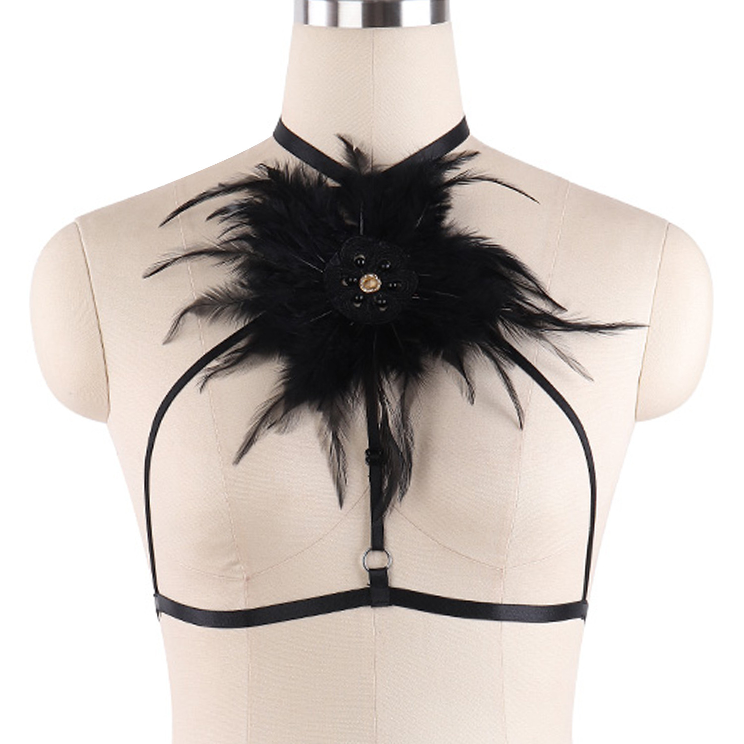 建紅服飾ハーネス羽毛飾り夜場舞踏会セクシーブラジャー趣味下着外国貿易O0710黒