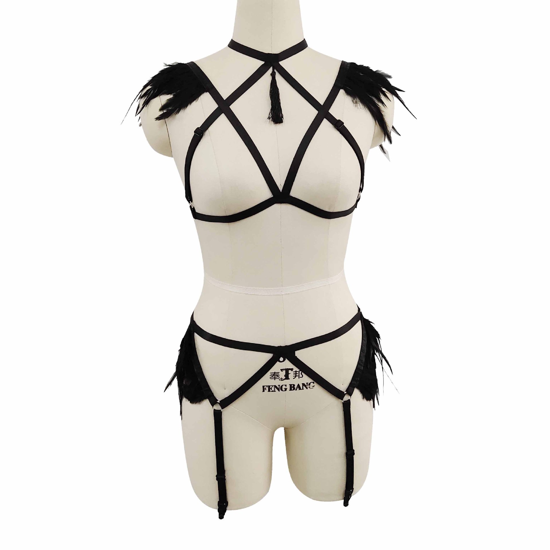 国境を越えた商品の供給源欧米のセクシーなバンドの羽のブラジャーの下着のガーターのハーネスの趣味のスーツの制服は女性を誘惑します。