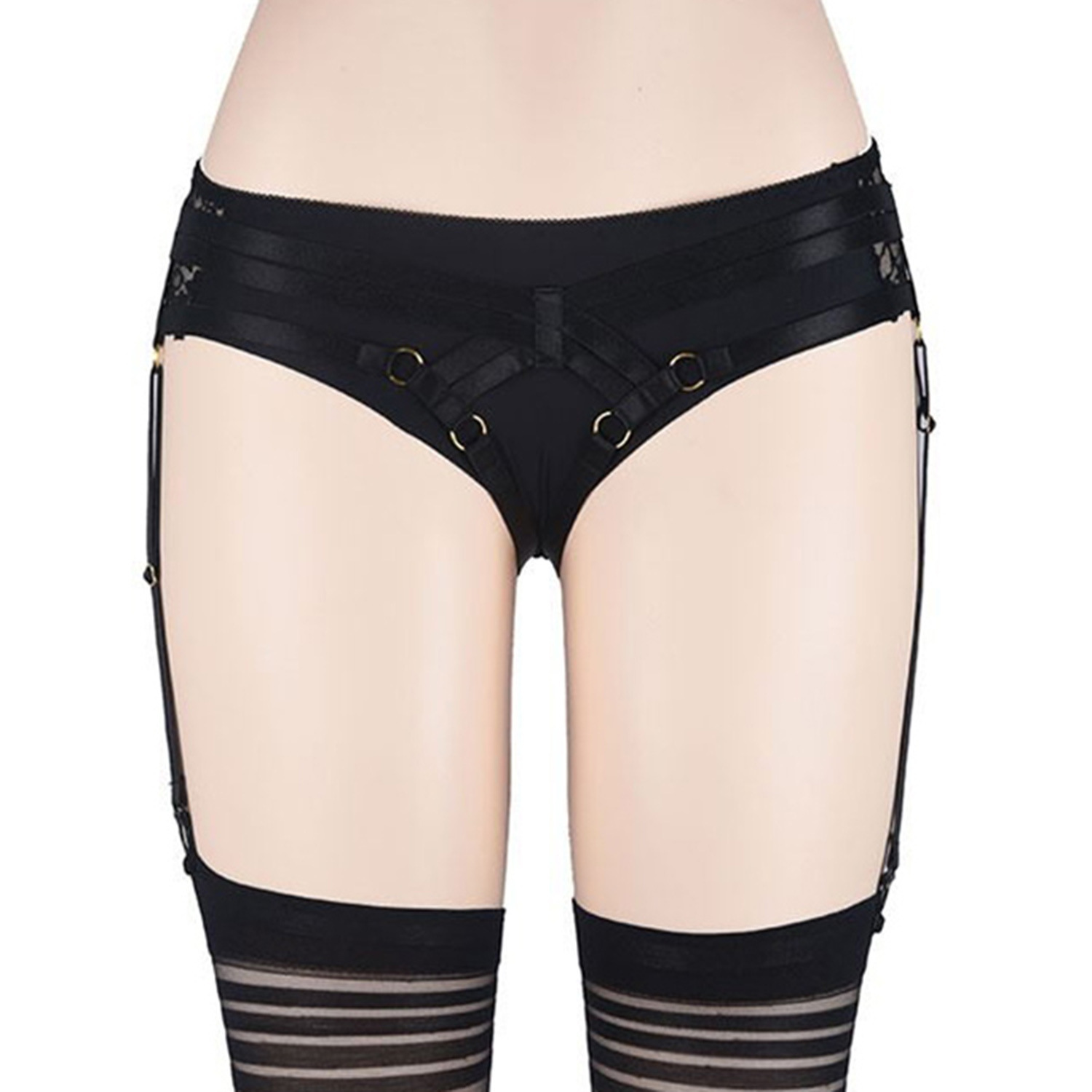 国境を越えたソースは、弾力的な透かし彫りのセクシーなストラップを誘惑します。