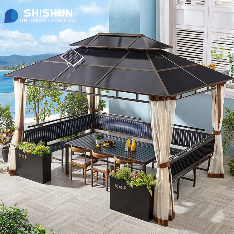屋外ヴィラ中庭日よけ屋外家具アルミ合金パビリオンガーデンルーフベッドアンドブレックファストホテルパビリオン