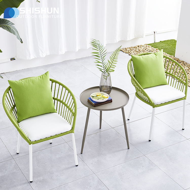 北欧のミルクティー店の喫茶店のテーブルと椅子の屋外のベランダの民宿のホテルの縄は椅子の花園の午後のお茶のテーブルと椅子の家具を編みます。