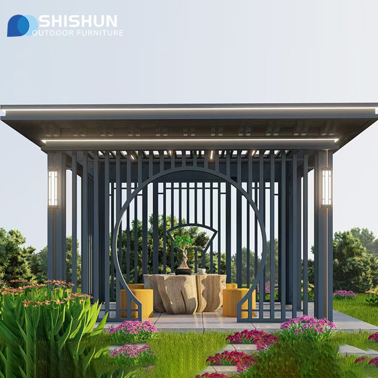 屋外ヴィラガーデン中庭パビリオンアルミ合金廊下ラック庭新中国風パビリオン風景B&B中庭家具