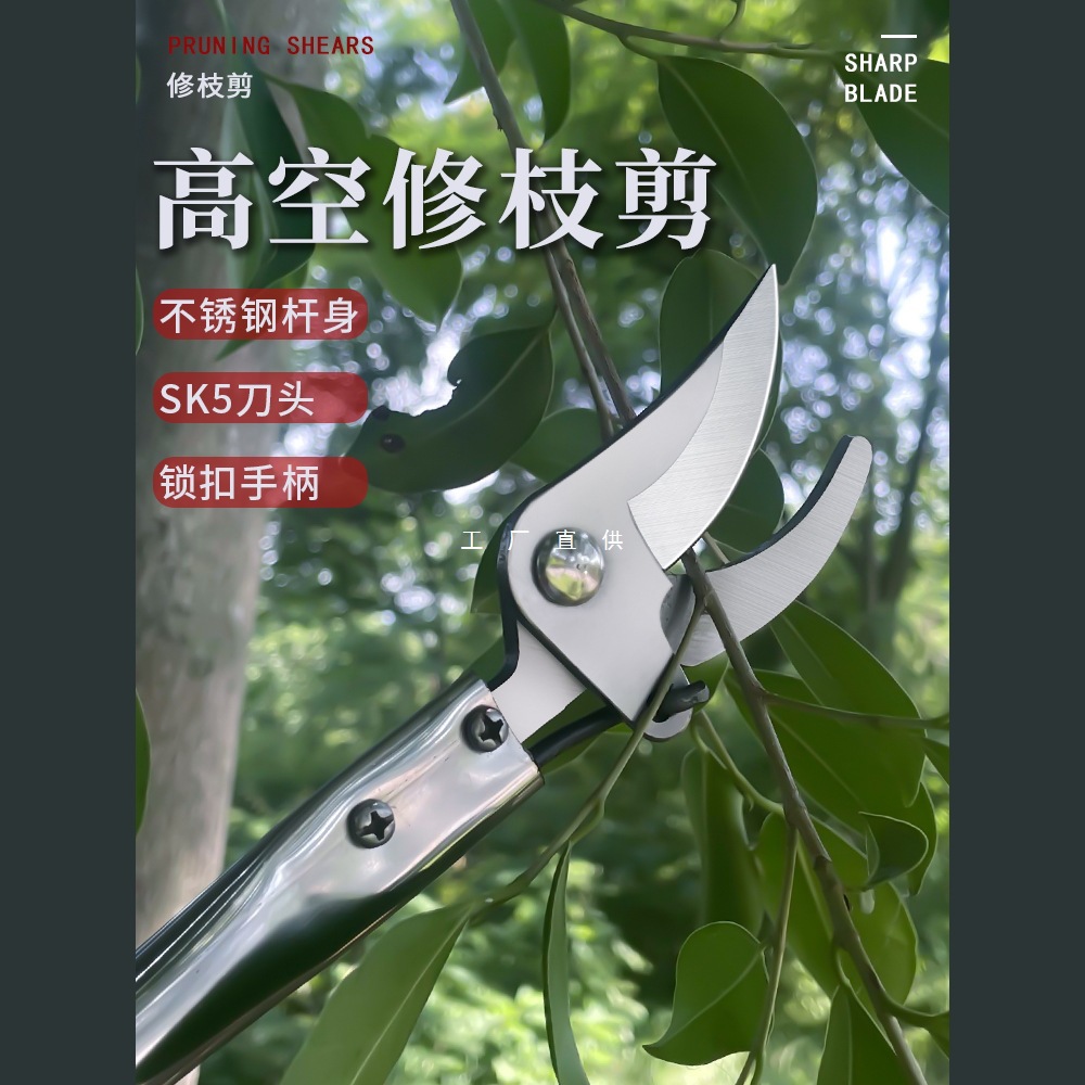 ステンレス製高所果樹剪定鋏、高枝鋏、緑化園芸鋏、延長鋏、ロングポール剪定鋏、果樹剪定鋏