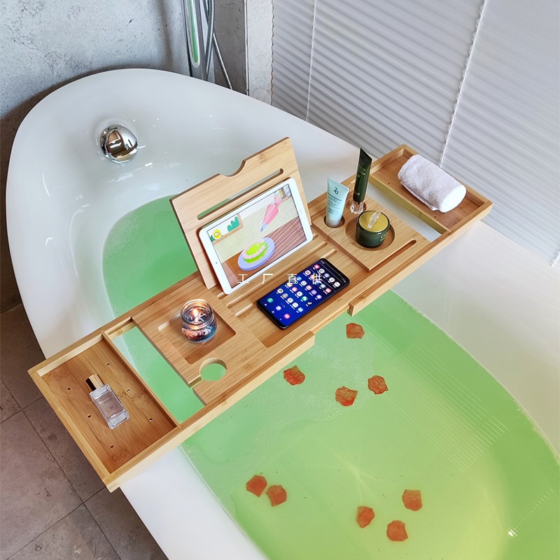 バスタブ棚竹木伸縮風呂タオル平板仕切りスタンド風呂桶携帯電話トレイ黒白