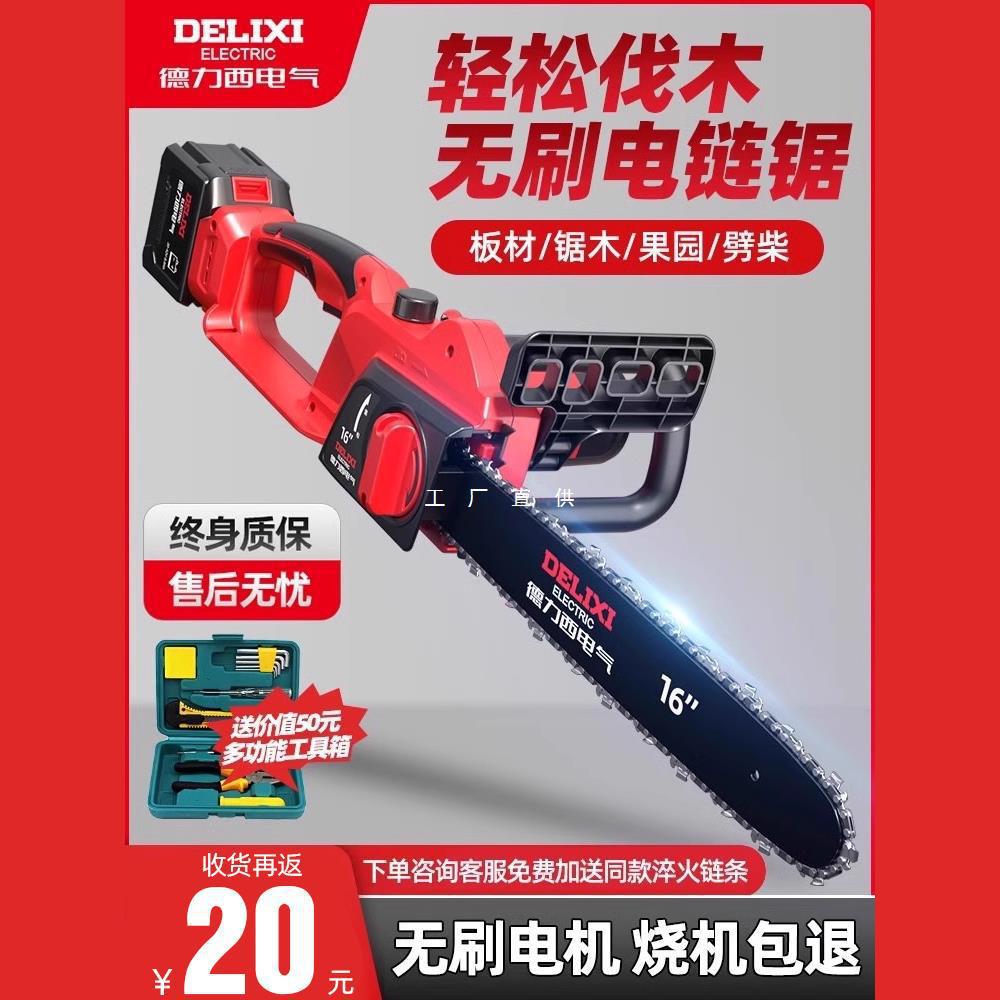 Delixi Electric 家庭用小型ハンドヘルド電動のこぎりハイパワー リチウム電池伐採のこぎり切断充電式チェーンソー