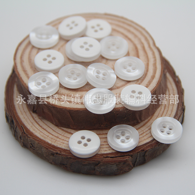 現物樹脂ボタン真珠光沢白地幅四眼ボタン子供シャツセーターコート風衣ボタン
