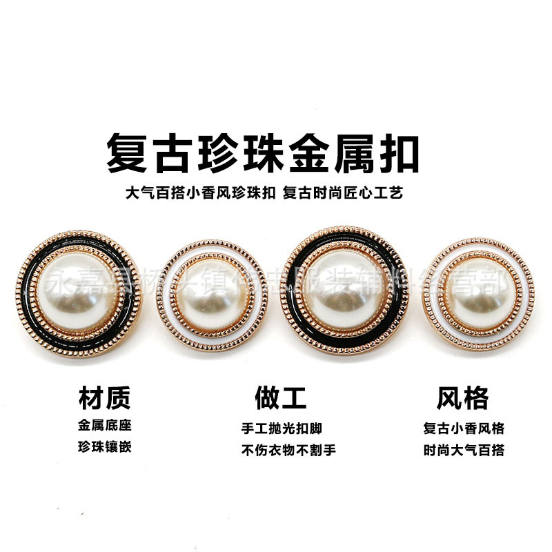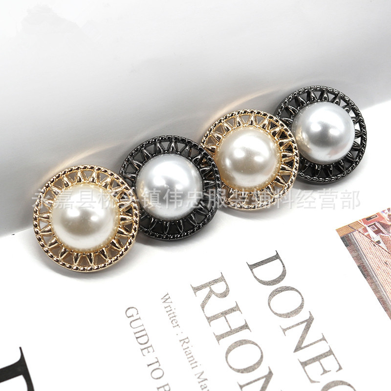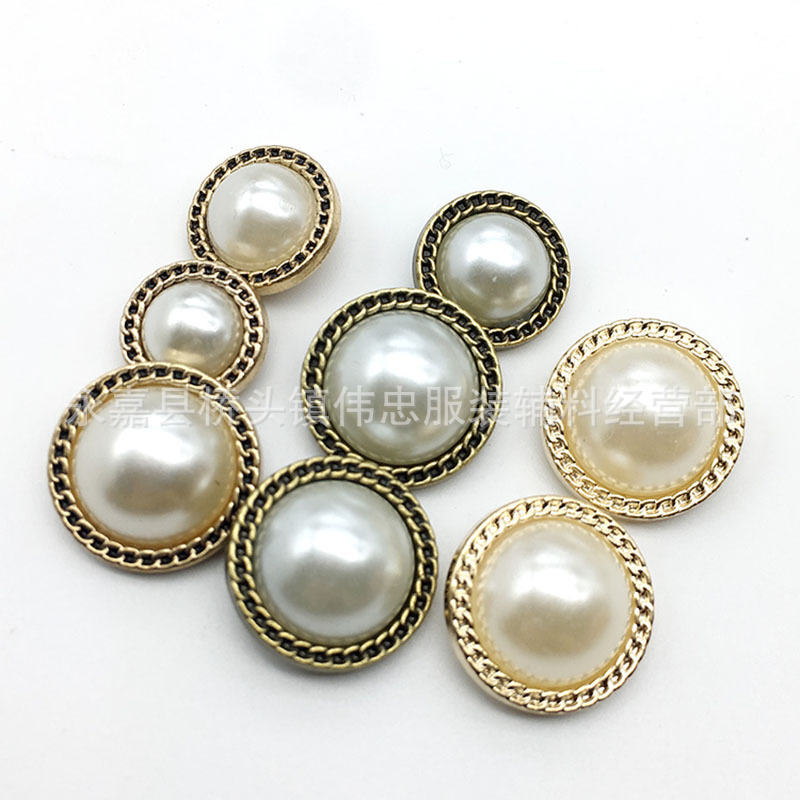 ファッション真珠金属ボタン女性コートセーターシャツボタン小香風円形コンビネーションボタン装飾