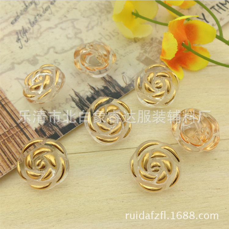 台湾アクリル水晶ドリル箔押しバラのボタンコート風衣シャツ紡織コートdiyボタン