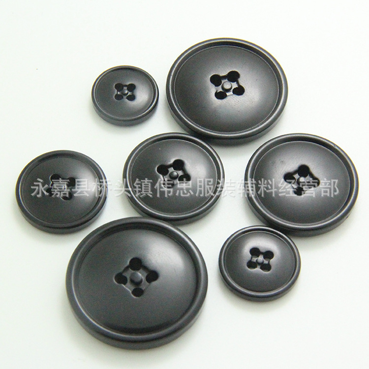 卸売り樹脂ボタン四眼全黒亜光ボタンコート風衣スーツ両面毛コートボタン