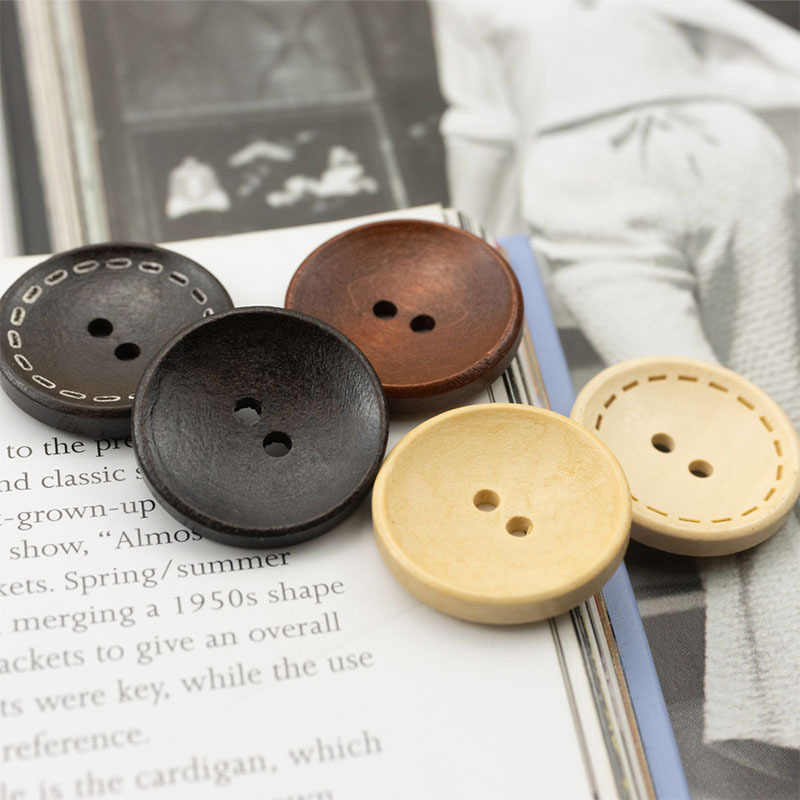天然木ボタン椀形二眼点線梨木ボタン子供シャツ風衣セーターコートボタン