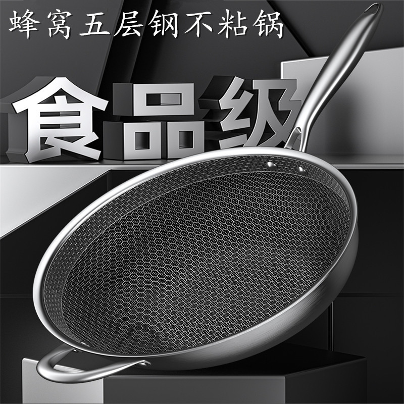 ハチの巣の5層の鋼は鍋のステンレスの鍋にくっつかないで、家庭用の鍋のフライパンの電子レンジのガスレンジは通用します。