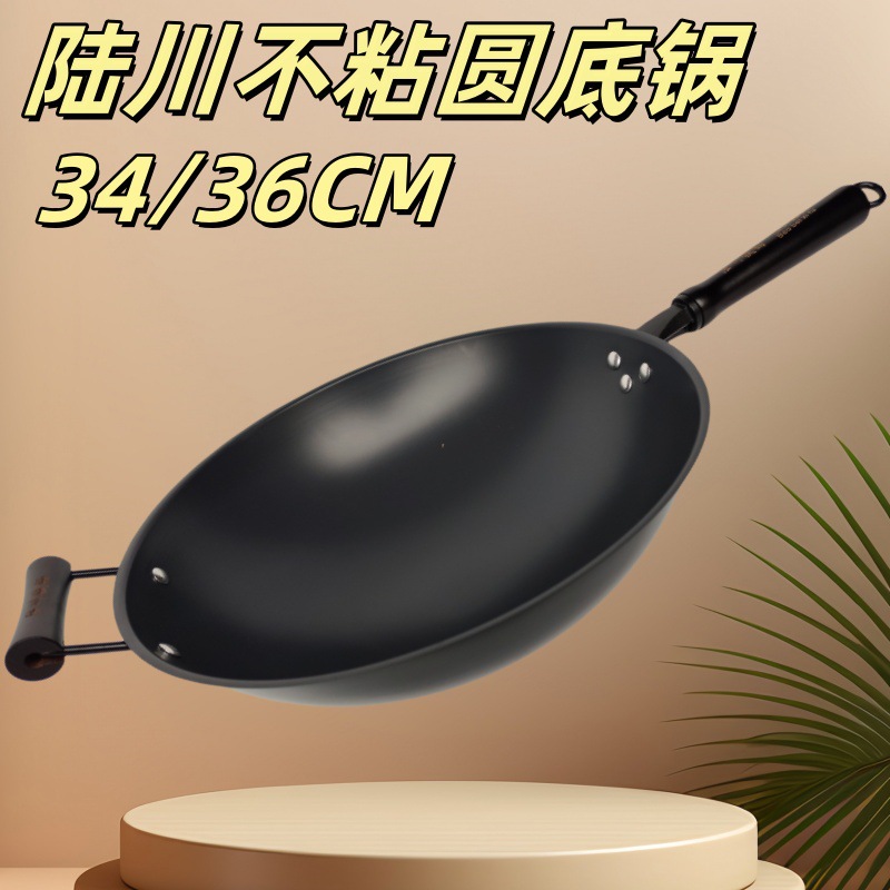 陸川鉄鍋炒め鍋熟鉄鍋家庭用無粘鍋丸底炒め鍋旧式鋳鉄鍋ガス用