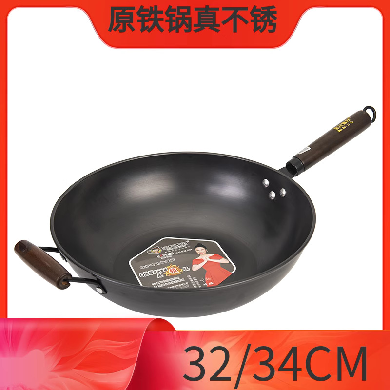 鋳鉄鍋無コーティング鉄鍋家庭用炒め鍋錆びない炒め鍋古い生鉄鍋円底鍋ガスレンジ用