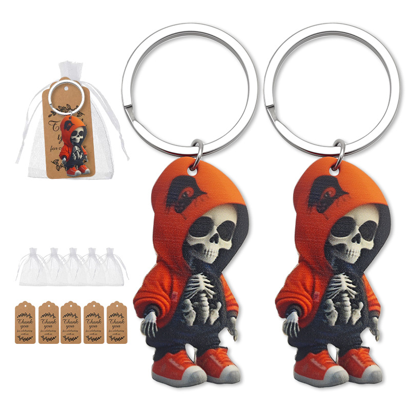 クロスボーダークリエイティブtemuアマゾン新製品ハロウィンマントフードスカルウッドタグキーホルダーホリデーギフト