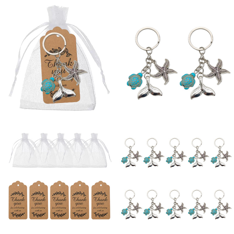 Amazon Xiyin temu クロスボーダーホットセール合金ヒトデマーメイドテールとタートルキーホルダーパーティーギフト