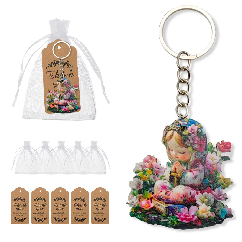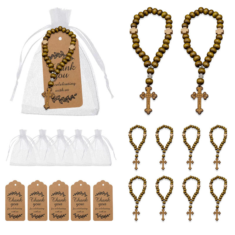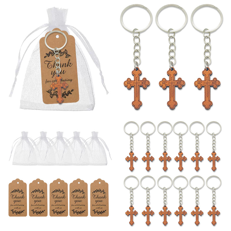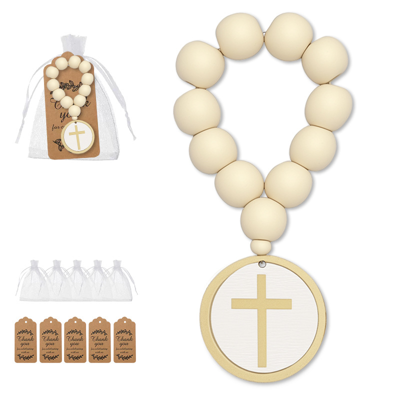 クロスボーダーの新型外国貿易の洗礼の鍵の輪の十字の白い網の紗の袋の聖餐の贈り物の木の玉の串のセットの卸売り