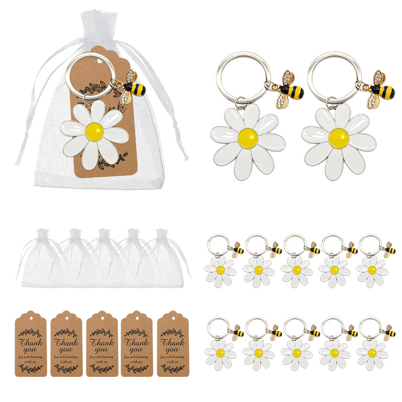 クロスボーダービーパーソナライズされたデイジーキーホルダーペンダントステンレス鋼フラワーキーリングバッグ車のキーペンダント