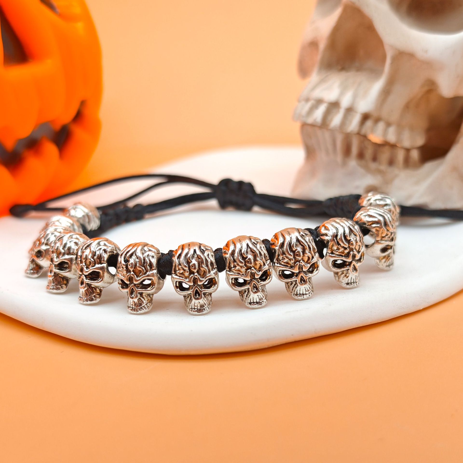 ホット販売クロスボーダー temu アマゾンスポット外国貿易ハロウィンギフト小道具スカルファミリー織りブレスレット卸売