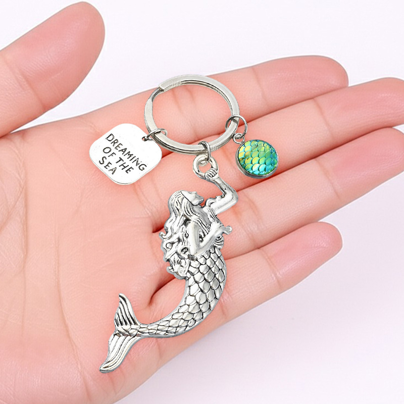 Amazon ベストセラー オーシャンマーメイド キーホルダー オイルドリップ グラデーション フィッシュテール 魚の鱗 ウィッシングボトル ジュエリー 小さなペンダント