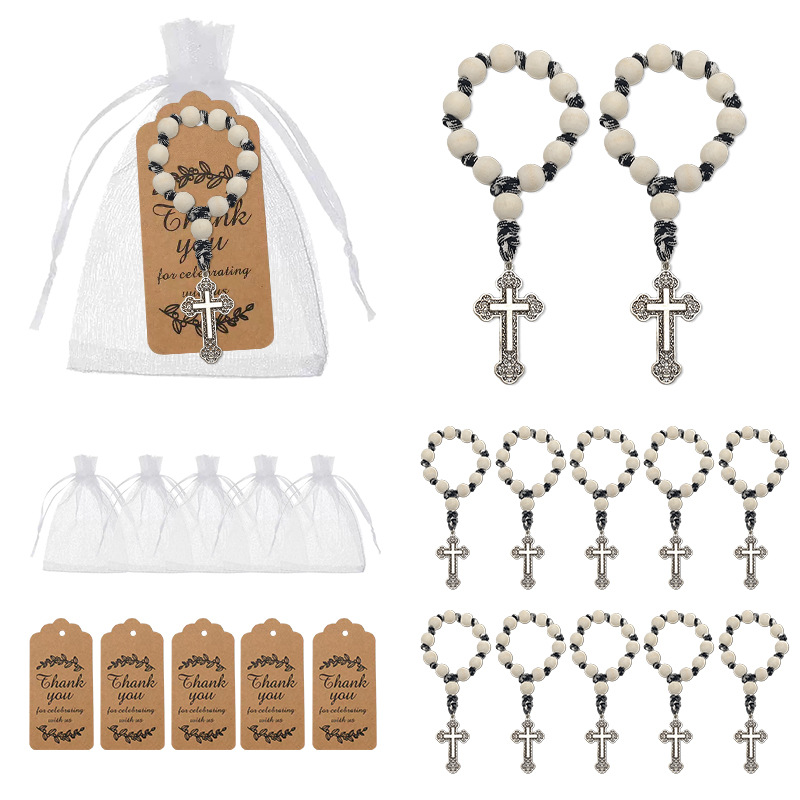 国境を越えた新しい対外貿易木製洗礼ビーズセットクロス白いネット袋聖餐プレゼント木珠串