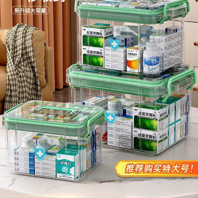 多層薬箱家庭用家庭用薬箱大容量薬収納ボックス透明大型医療救急薬箱