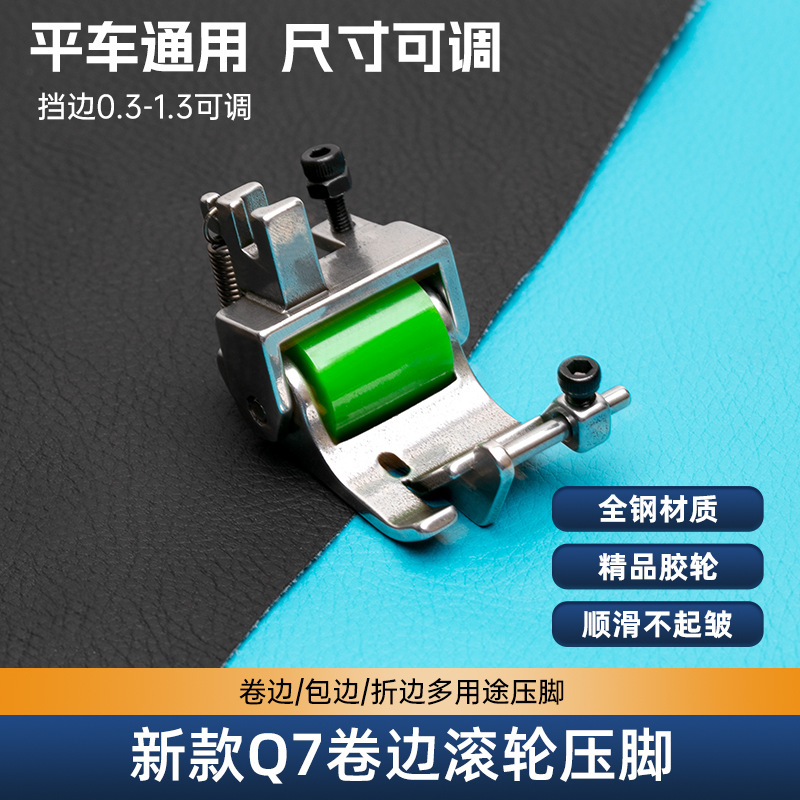 新型フラットベッドQ7カーリングローラー押え幅調整可能、上襟テープ、ローラー押え付き押え