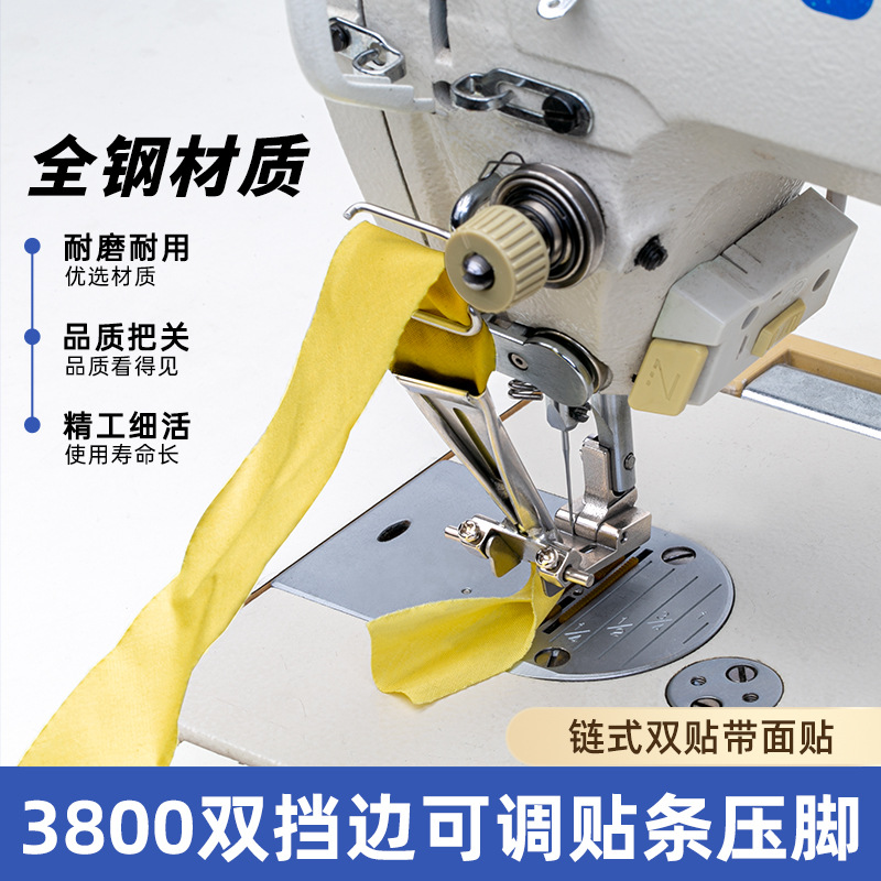 3800 チェーン二本針機、調整可能なウェビングストリップ折りたたみチューブ、ダブルナイフエッジストリップ、プルチューブ、ショルダーストリップ押え金