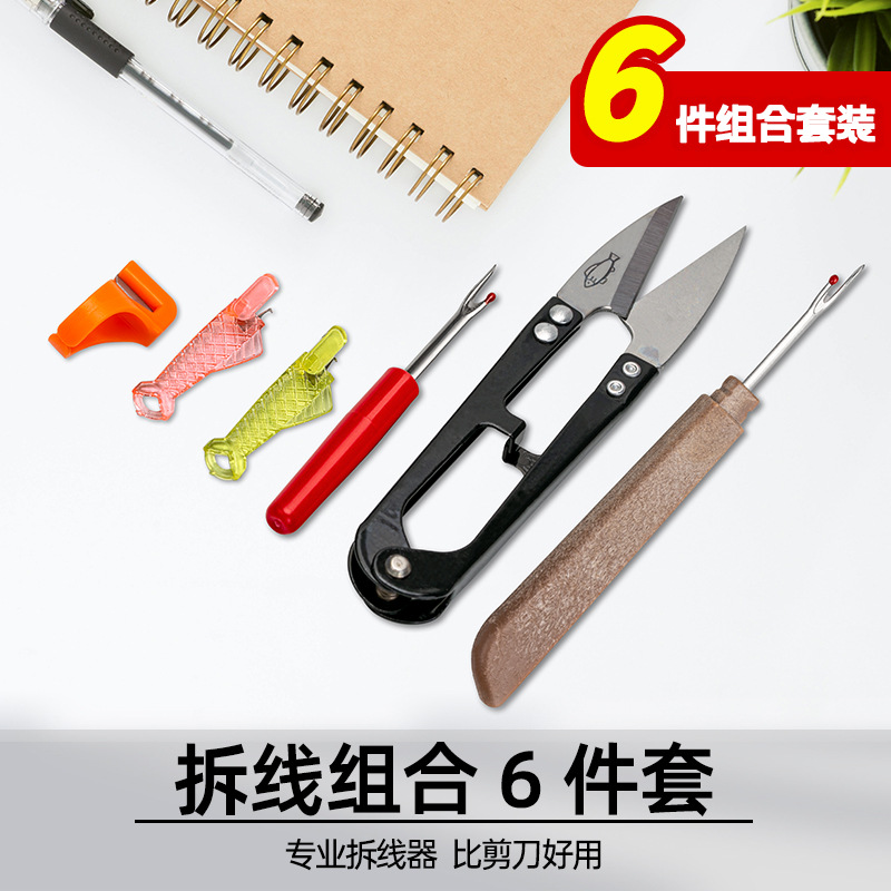 服の糸抜き6点セットの糸抜き6点セットのミシン部品の裁縫用品の糸抜きナイフは木の柄のプラスチックをまねます。