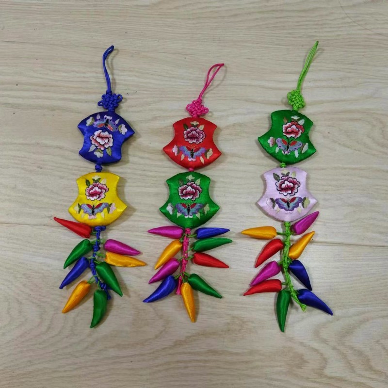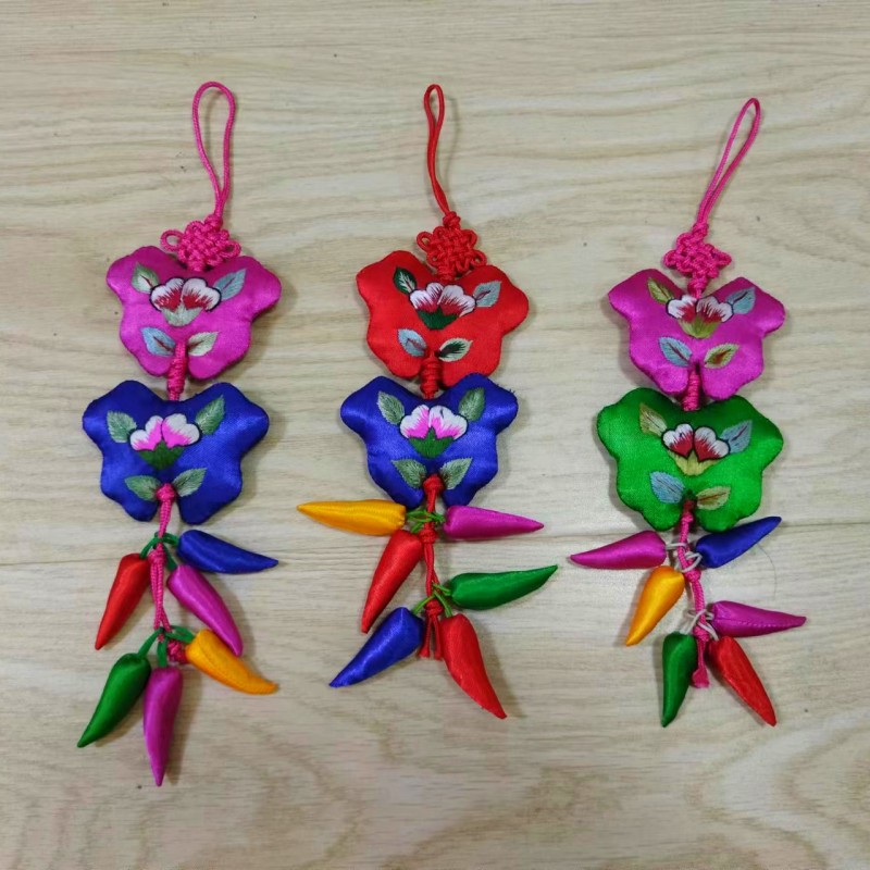 朝鮮族福袋唐辛子蝶刺繍ペンダント韓国装飾品ホーム壁飾り韓国式プレゼント