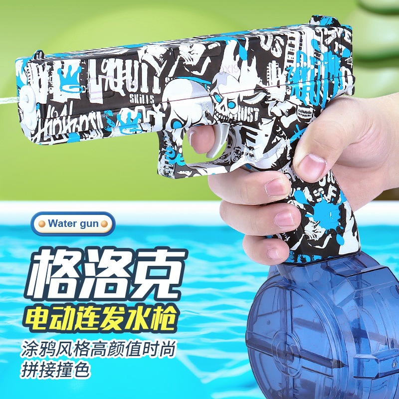 クロスボーダー新型落書き電動グロック水鉄砲子供玩具全自動充電連発夏ビーチ水鉄砲