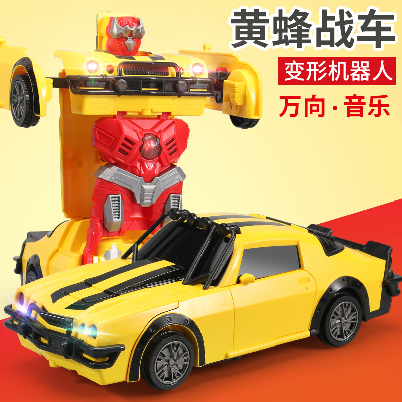 電動万能変形パトカー少年玩具クール照明熊蜂ロボットスポーツカー戦車露店卸売り