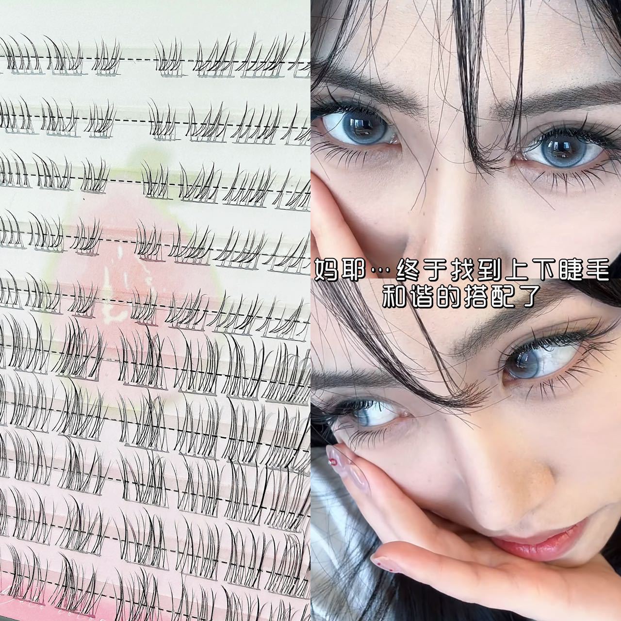 ハニーボックス 接着剤不使用の小さな薄い鹿まつげ つけまつげ カーブステム 写真に映える ナチュラルなカール 軽量 セグメント化された取り外し不要のまつげ