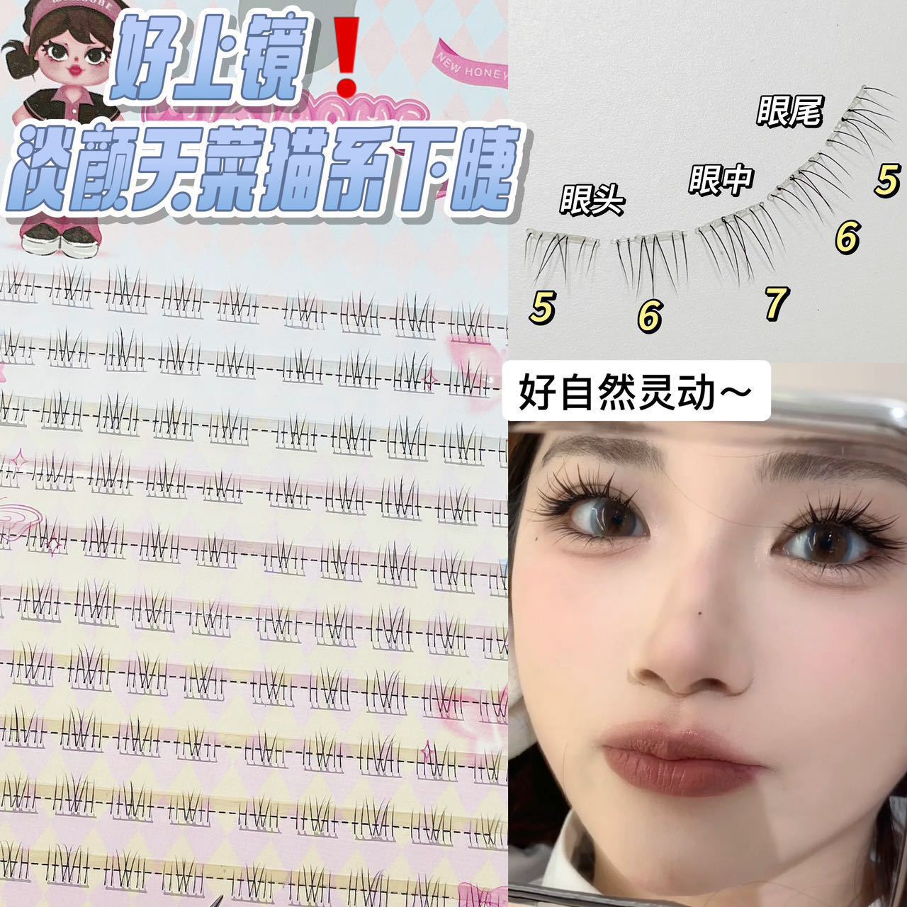 ハニーボックス 小花猫 模擬下まつげ インフルエンザ ナチュラル ピュア ディザイア クリア フェイク プレーン 軽量 デイリー つけまつげ