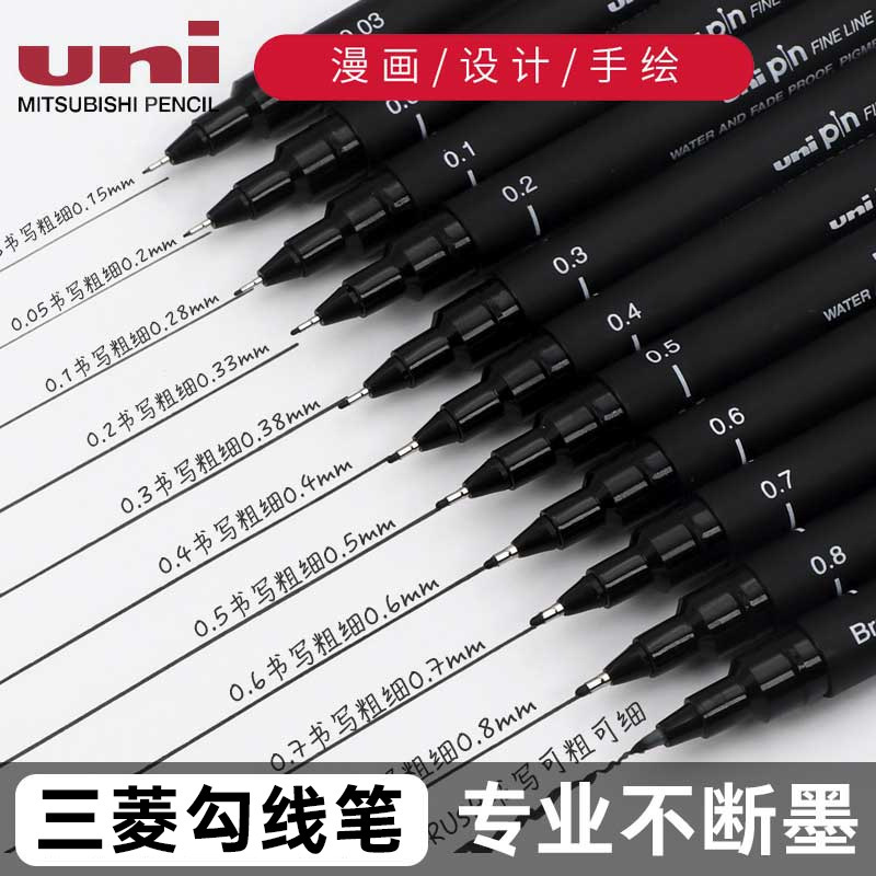 日本ユニ三菱ソープペンペン手描き美术生専用黒防水油性漫画フックペン
