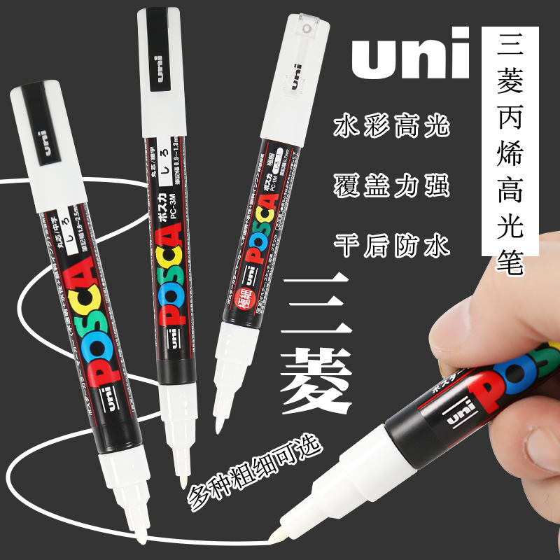 日本ユニ三菱白色ハイライトペンアクリルマークペン手描きdiyアクリル絵の具黒カード白色マーカーペン