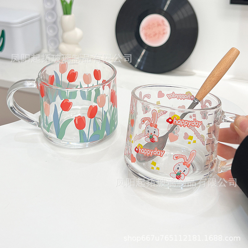 ガラスカップかわいい漫画フリップミルクカップ韩国ins风カップル家庭用朝食ジュースコーヒーカップ