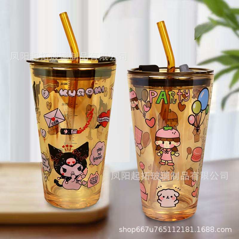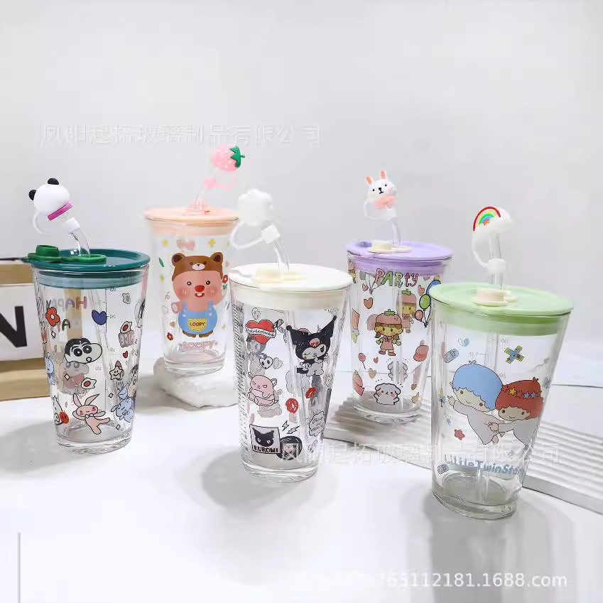 かわいい漫画超大容量耐熱ガラスカップホームオフィスクリエイティブティージュースウォーターカップ
