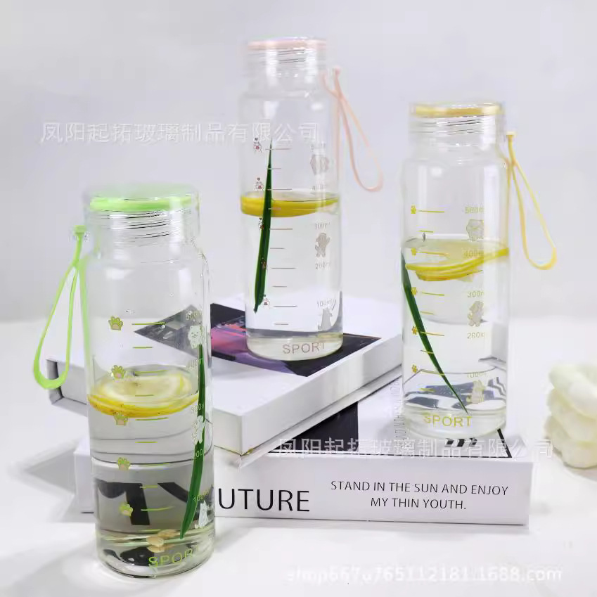 ガラス角型ウォーターカップインスタイルスケール耐熱カップオフィス通勤フルーツティープリントカップガールギフト